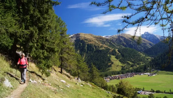 The Gommer Höhenweg leads along the sunny side of the high valley Goms. Due to its location high above the Goms villages, the hike guarantees views over the entire valley. The trail leads through the fascinating and authentic natural and cultural landscape of the Goms. The trail promises maximum hiking pleasure on beautiful paths, through larch forests and across wide alpine meadows.